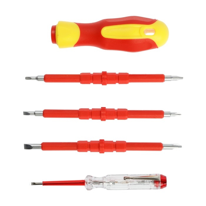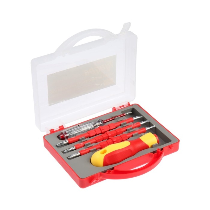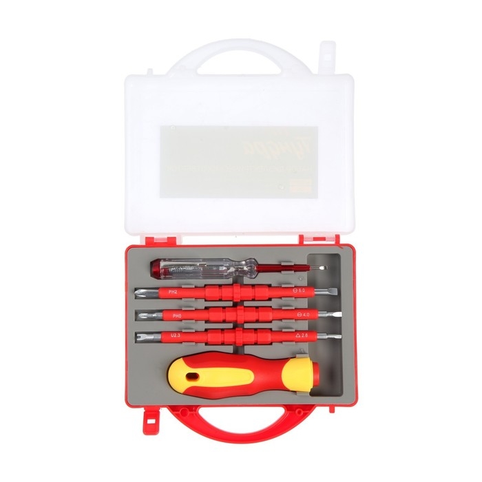 Рабочая часть отвёрток выполнена из прочной CrV стали. Рукоятки оснащены мягкими прорезиненными вставками.