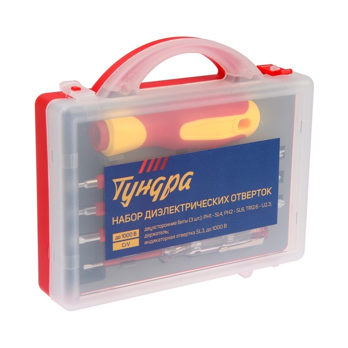Набор диэлектрических отверток ТУНДРА, CrV, двухсторонние биты 3 шт., до 1000 В