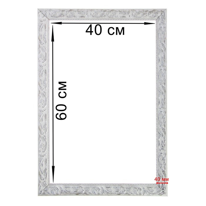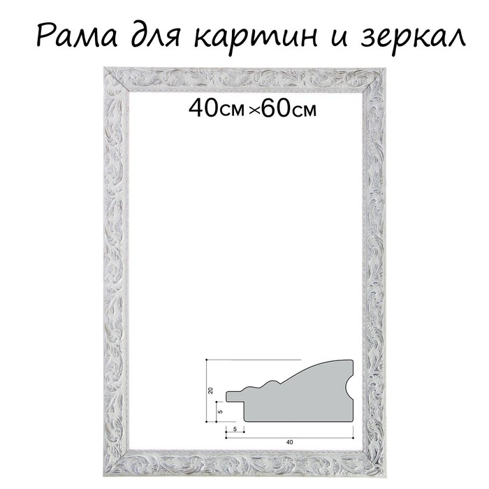 Рама для картин (зеркал) 40 х 60 х 4 см, дерево "Версаль", бело-серебристая