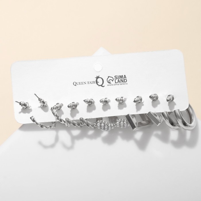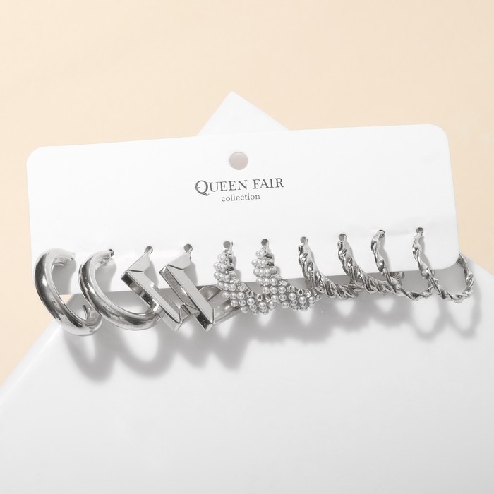 Серьги набор 5 пар «Леди» линии, цвет белый в серебре