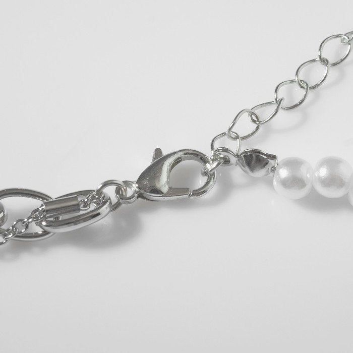 Кулон с жемчугом «Бабочка», цвет белый в серебре, 30 см