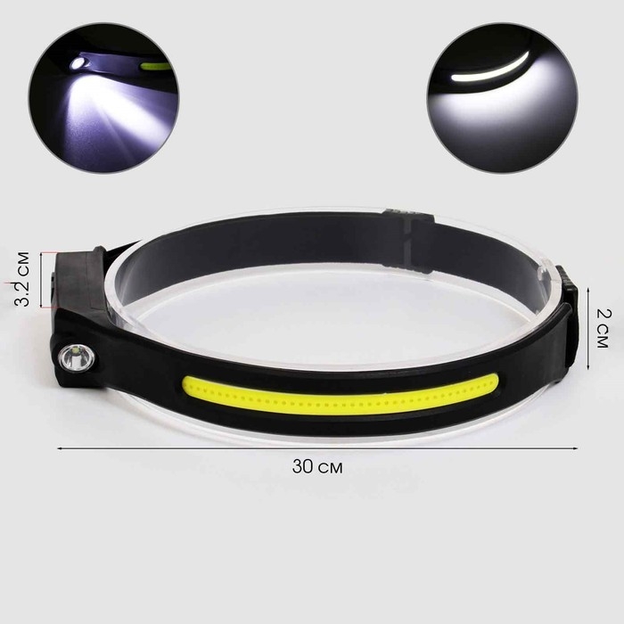Фонарь налобный аккумуляторный 350 лм, 1200 мАч, COB, XPE, 5 режимов, IPX4