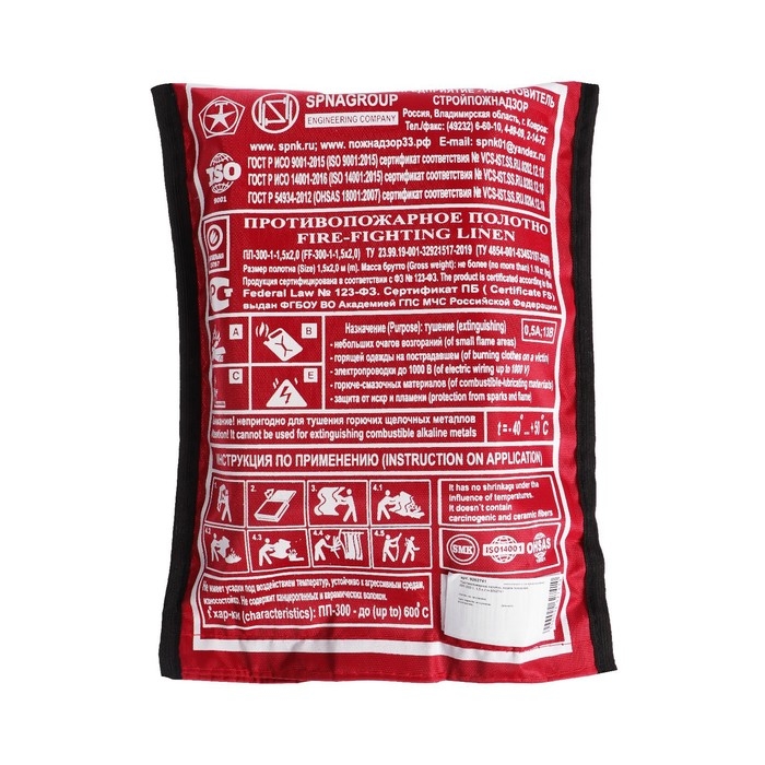 Противопожарное полотно, кошма пожарная, ПП-300-1, 1,5 х 2 м, упаковка ПВД