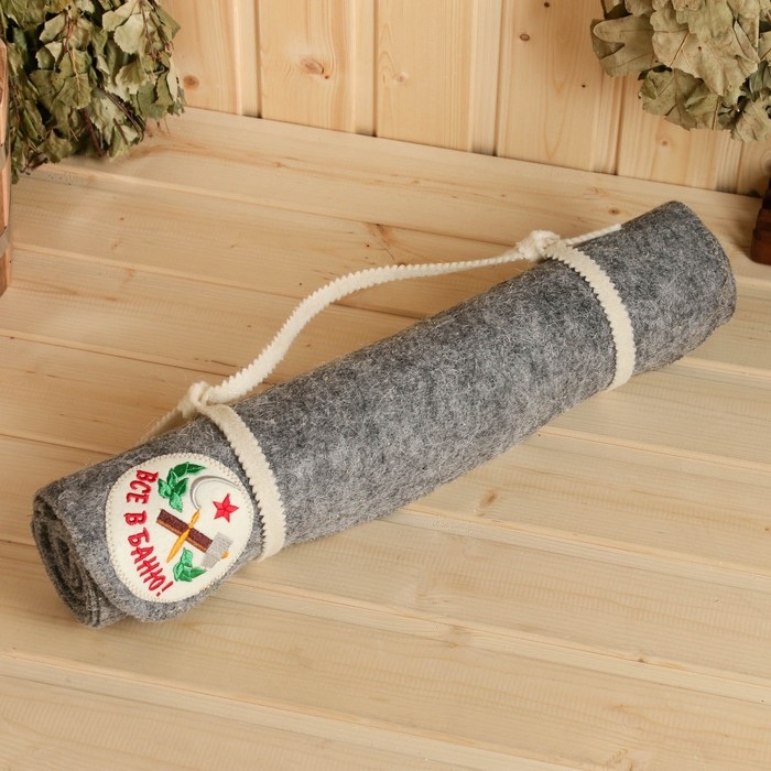 Лежак для бани темный с вышивкой "Все в баню" 150х50 см