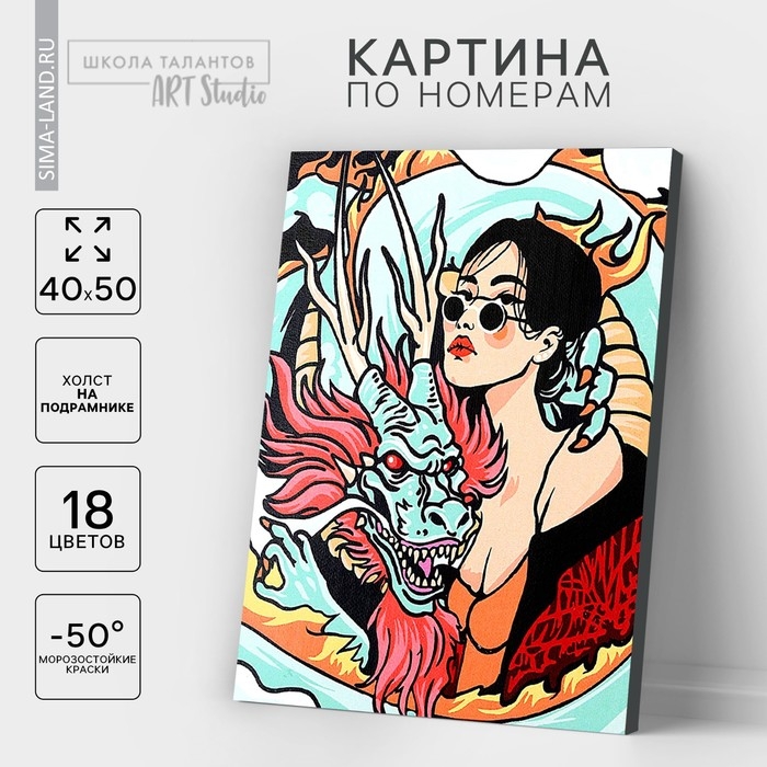 Картина по номерам на холсте с подрамником «Девушка с драконом», 40 х 50 см