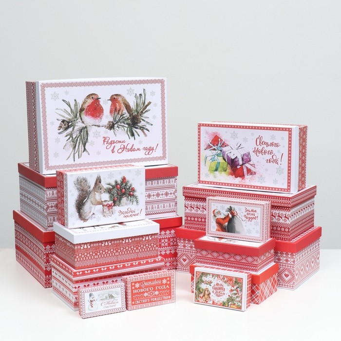 Набор коробок подарочных 15 в 1 "Скандинавия", 46,6 х 35,2 х 17.5- 12 х 7 х 4 см