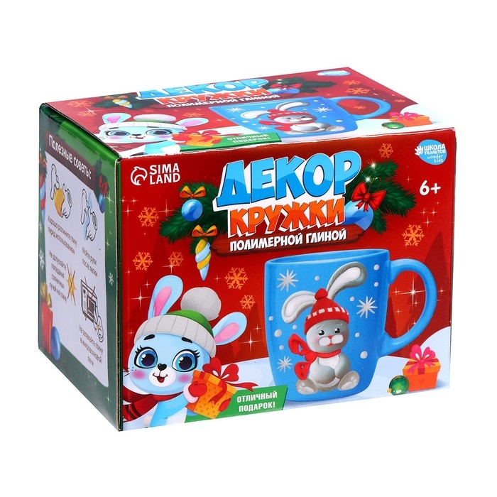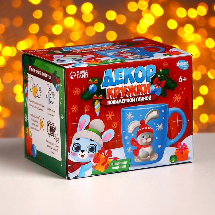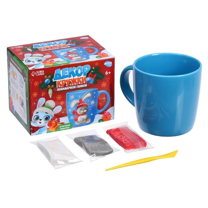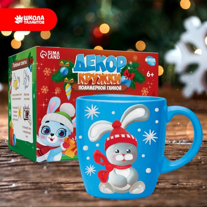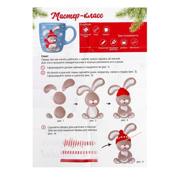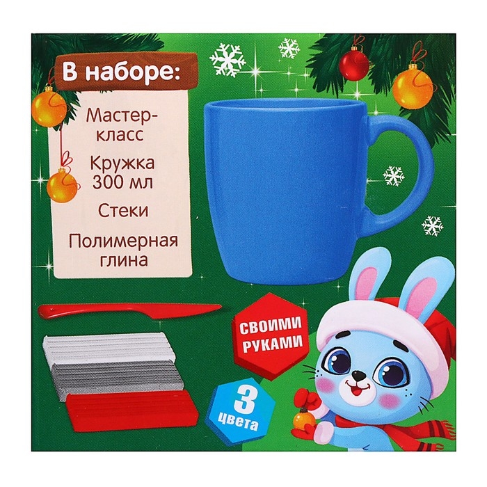 Декор кружки полимерной глиной на новый год «Зайка в шапочке», 300 мл, новогодний набор для творчества