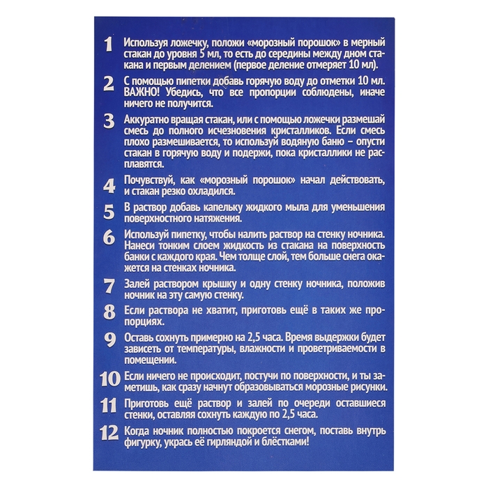 - В мерном стакане смешайте 2 г морозного порошка и 10 мл горячей воды.