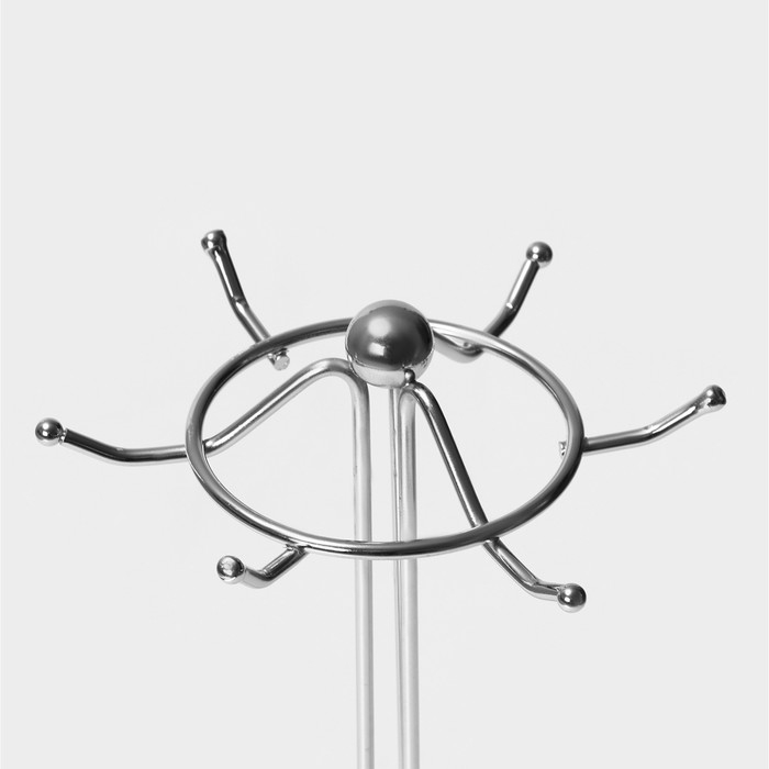 Подставка для кухонных принадлежностей изготовлена из нержавеющей стали. Имеет удобное устойчивое основание и шесть крючков. Вы сможете повесить все столовые принадлежности на крючки и поставить изделие в любом подходящем месте. Подставка для хранения кухонных инструментов будет необходимым аксессуаром на Вашей кухне. Изящный дизайн посуды придется по вкусу и ценителям классики и тем, кто любит изысканность и неповторимость.
