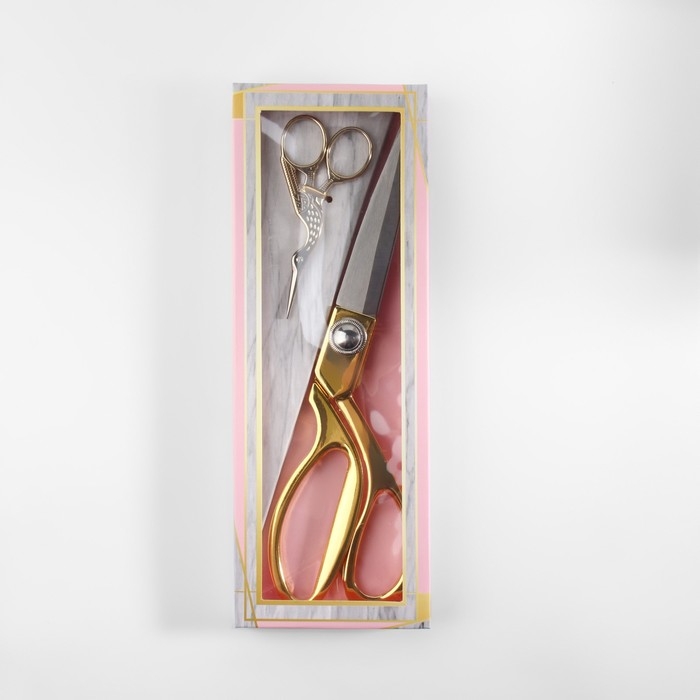 Набор ножниц подарочный: закройные ножницы 9", 23,5 см, ножницы вышивальные «Цапельки» 3,7", 9,5 см, цвет золотой