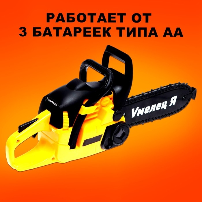 - Эта игрушка совсем как настоящая пила и при этом абсолютно безопасная. Нажмите на кнопку, и цепь начнёт вращаться и издавать характерные звуки.
