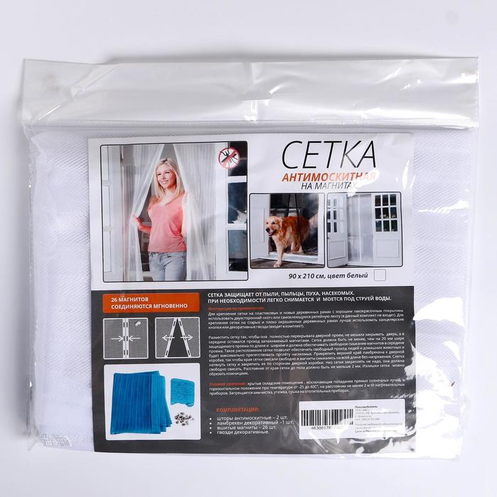 Сетка антимоскитная для дверей, 90 × 210 см, на магнитах, цвет белый
