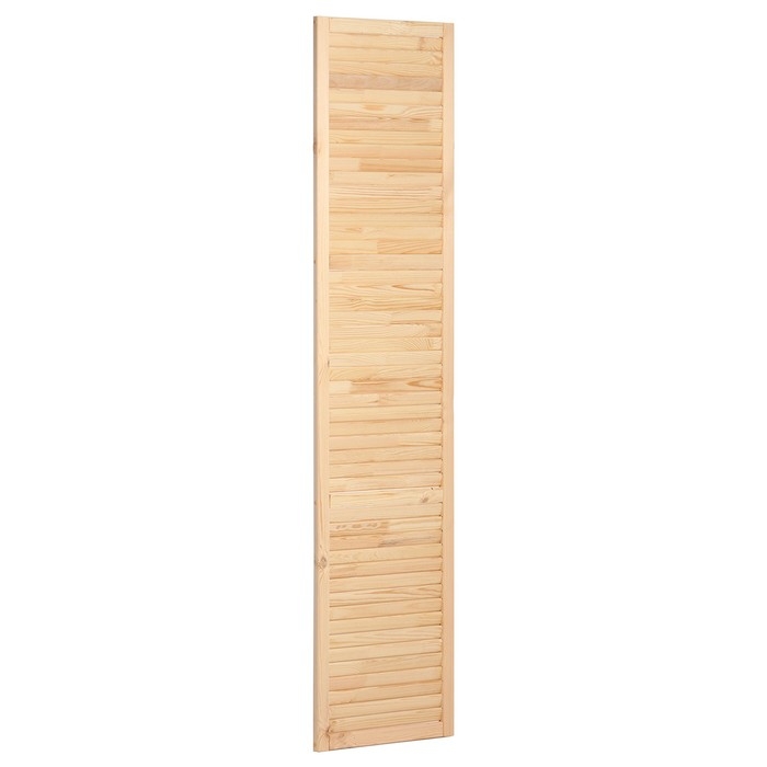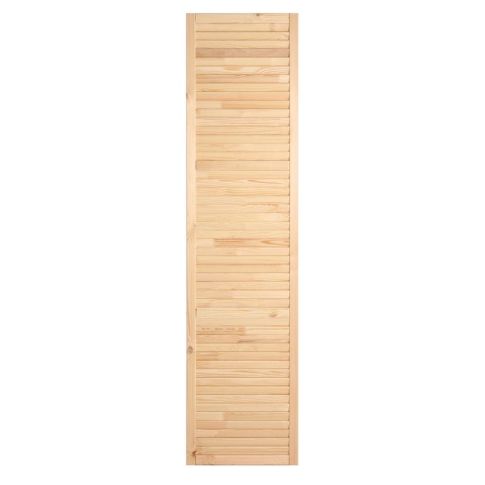 Жалюзийная дверь изготовлена из сосны. Такие двери используются в помещениях, где требуется постоянное проветривание. Также применять жалюзийный фасад можно для шкафов, тумбочек для ванной комнаты, на кухне, балконе или в кладовке. С помощью изделия легко создать уникальный дизайн мебели или обновить её внешний вид.