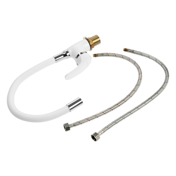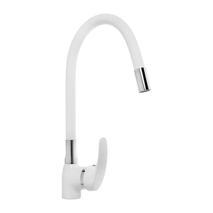Смеситель для кухни ZEIN Z5973, гибкий силиконовый излив, картридж 40 мм, латунь, белый
