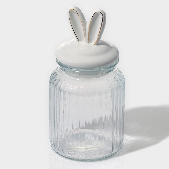 Банка стеклянная для хранения сыпучих продуктов Доляна «Зайка в золотом», 950 мл, с керамической крышкой