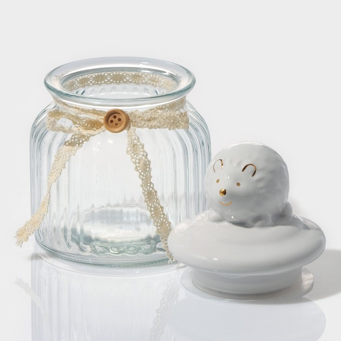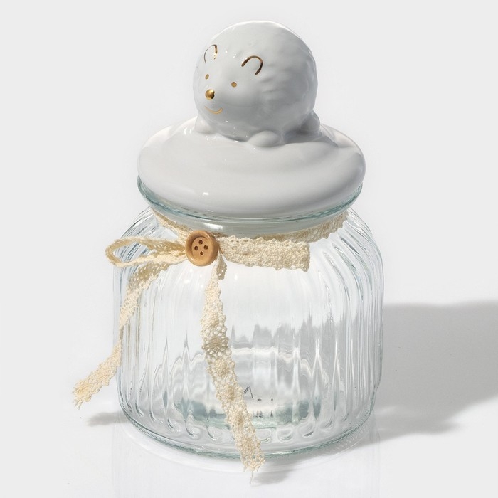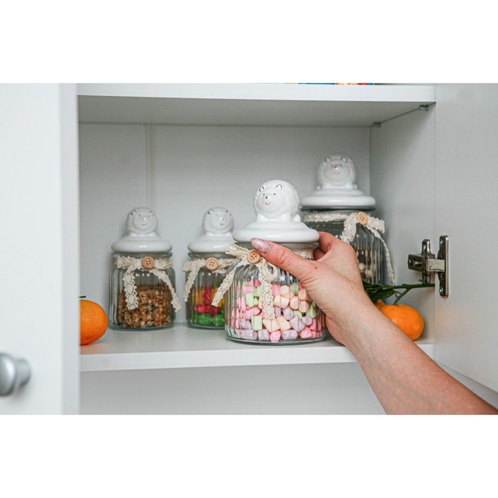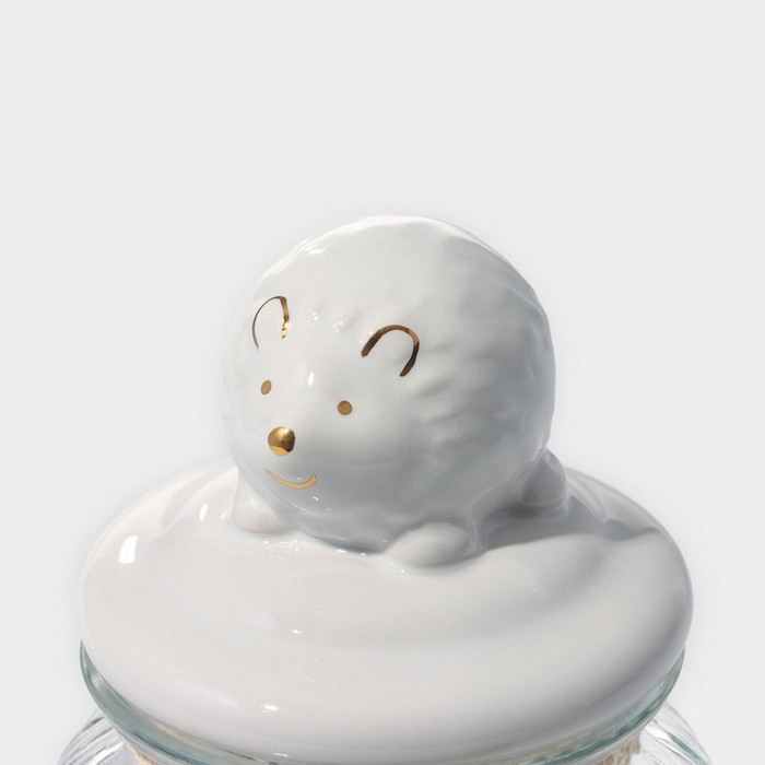 Банка стеклянная для хранения сыпучих продуктов Доляна «Ёжик в золотом», 600 мл, с керамической крышкой