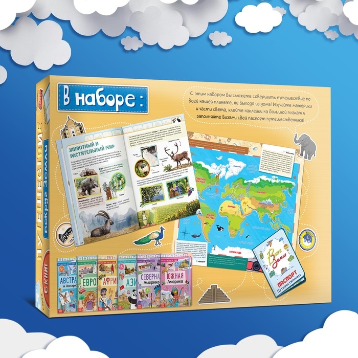 Набор «Путешествие вокруг Земли»: 6 книг, карта мира, паспорт, наклейки
