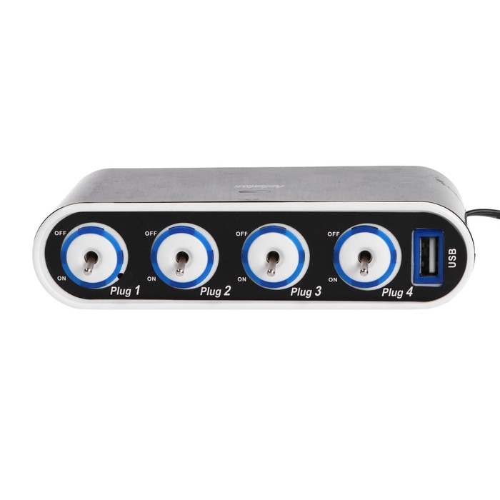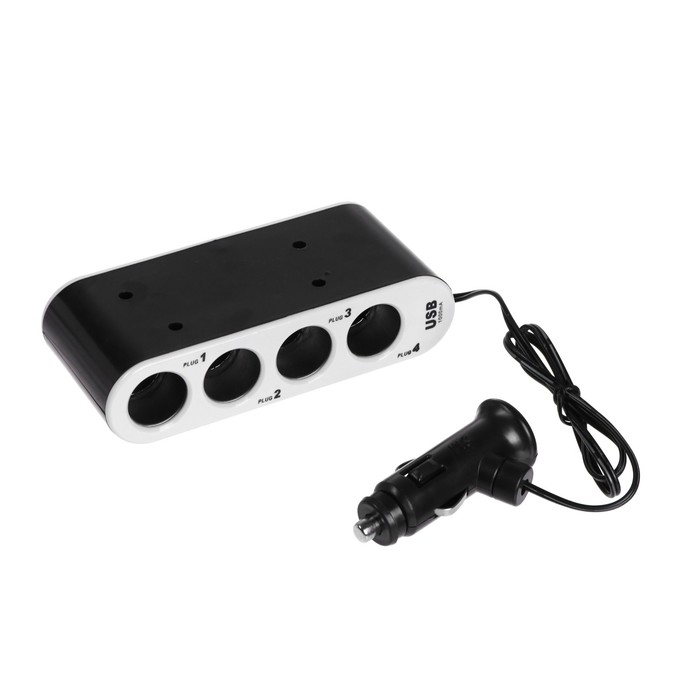 Разветвитель прикуривателя, 4 гнезда, 2 USB 1 А, 60 Вт, 12/24 В, провод 60 см