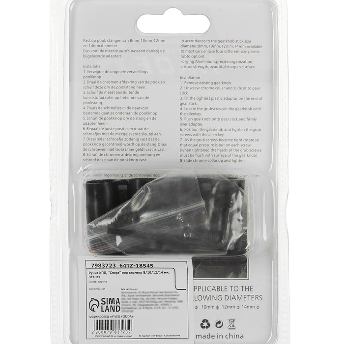 Ручка КПП, Спорт, под диаметр 8/10/12/14 мм, черная