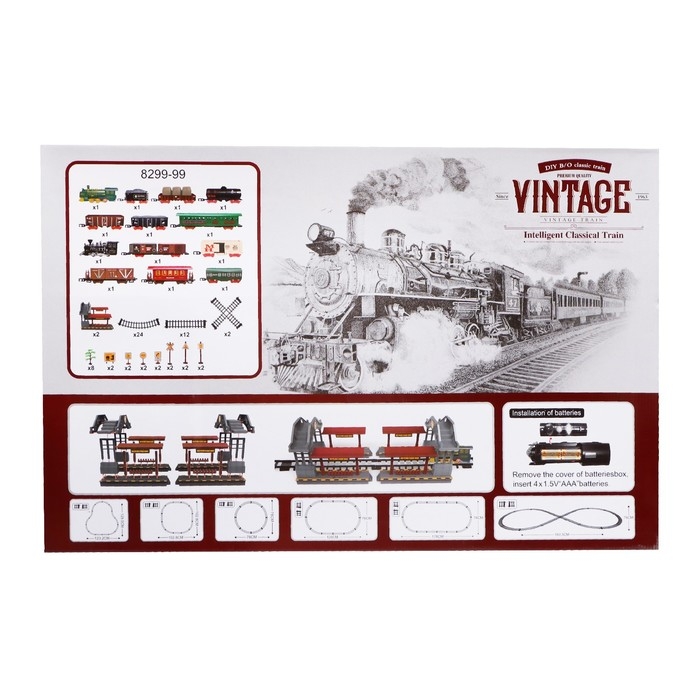 Железная дорога «Винтаж» — это большая классическая железная дорога с двумя составами, световыми и звуковыми эффектами. Сделайте остановку на станции, разгрузите состав, заберите пассажиров и отправляйтесь в очередной рейс.