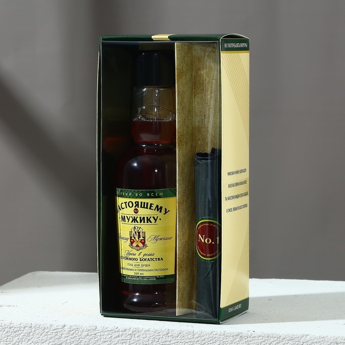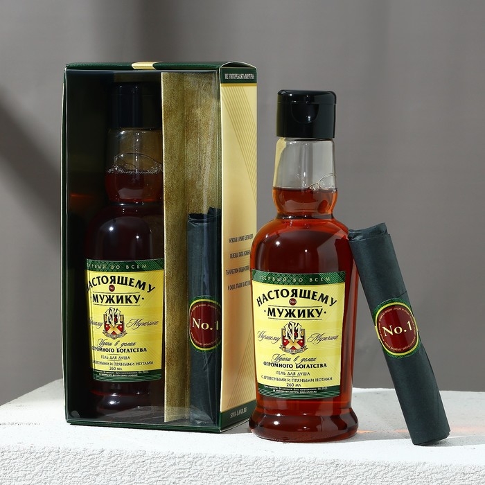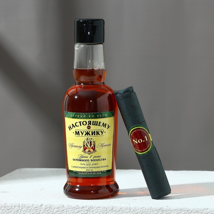 Новогодний подарочный набор косметики «Настоящему мужику», гель для душа во флаконе коньяка 250 мл и мыло для рук, Новый Год