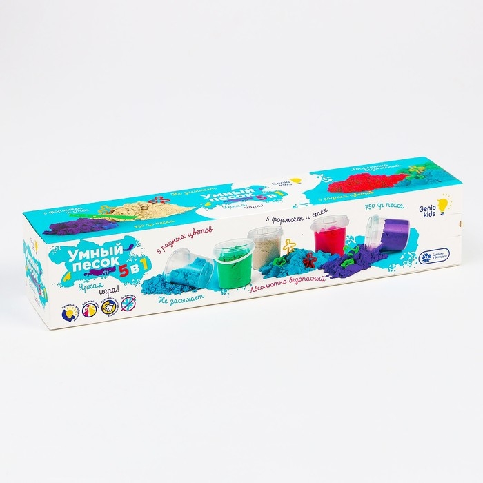 Умный песок приятен на ощупь, напоминает по консистенции морской песок. Он хорошо держит форму, не застывает на воздухе и не липнет к рукам. Поможет весело провести время детям разного возраста.