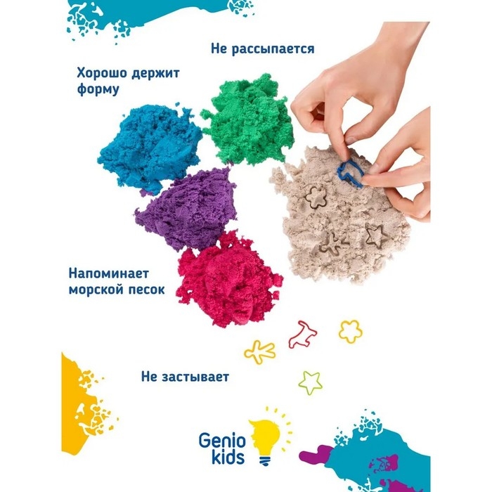 - Песок не оставляет пятен и неприятных ощущений на руках после игры.