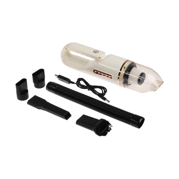 Пылесос автомобильный, беспроводной, 4 насадки, 120 Вт, 12 В, белый