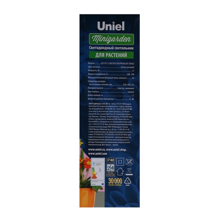 Фитосветильник светодиодный Uniel, 12 Вт, на прищепке, для фотосинтеза, IP40