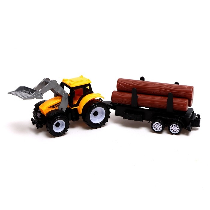 - В комплекте есть три бревна и маленький трактор, их можно легко снять с прицепа.