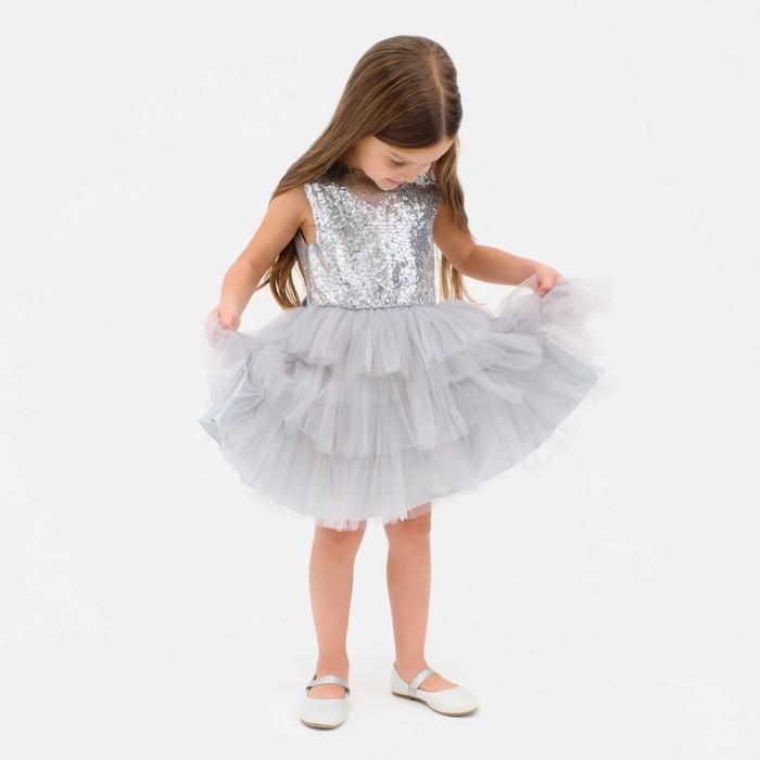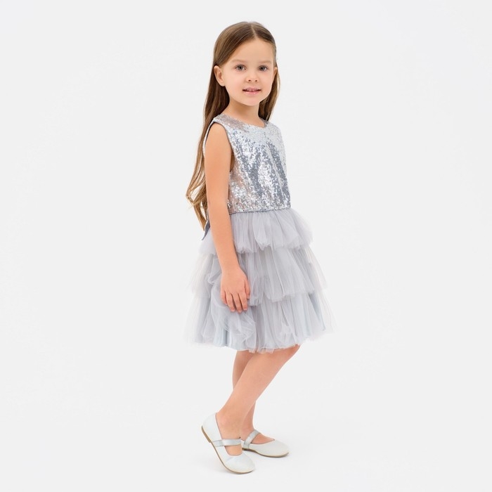 Платье для девочки с пайетками KAFTAN, размер 34 (122-128), цвет серый