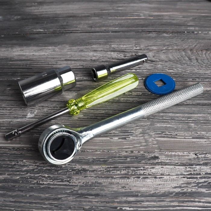 Адаптер, Биты, Вороток с трещоткой, Диск для трещотки, Отвёртка, Торцевая головка, Удлинитель