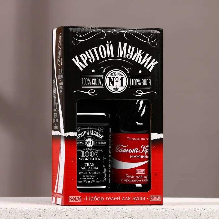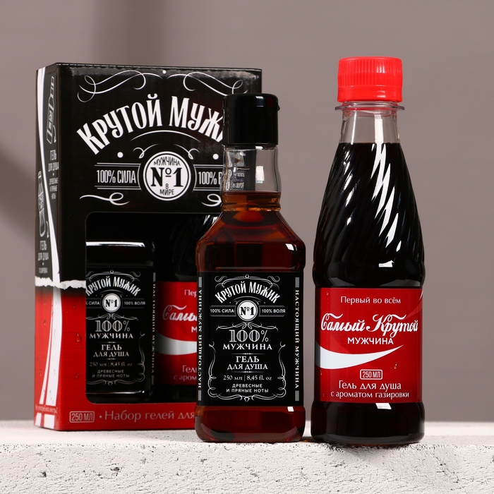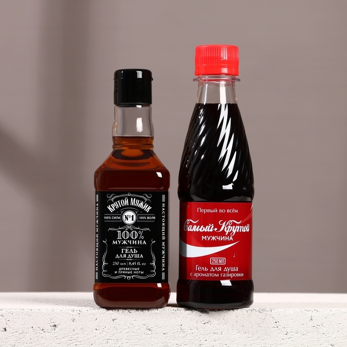 Новогодний подарочный набор косметики «Крутой мужик», гель для душа во флаконе виски 250 мл и гель для душа во флаконе кока-колы 250 мл, Новый Год