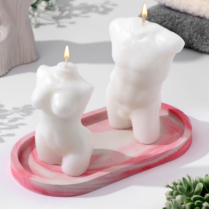 Набор свечей на подставке "Мужчина и женщина", бело-розовая подставка