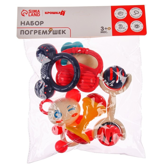 - Привлекательный дизайн: Наши погремушки специально разработаны для привлечения внимания малышей. Яркие цвета, забавные текстуры и уникальные формы - все это привлекает внимание ребенка и помогает развивать его сенсорные способности.