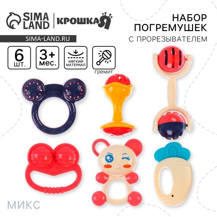 Набор погремушек «Растем вместе», 6 шт, с эластичными элементами, цвет МИКС, Крошка Я