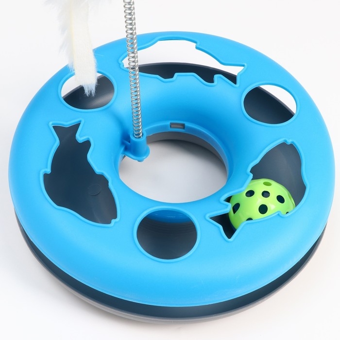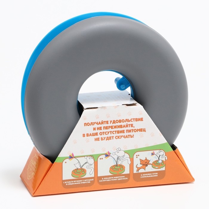Игрушка для кошек "Загадочный круг - Рыбки", мышь на пружине и шарик, 23 х 7 см, голубая/серая 79161