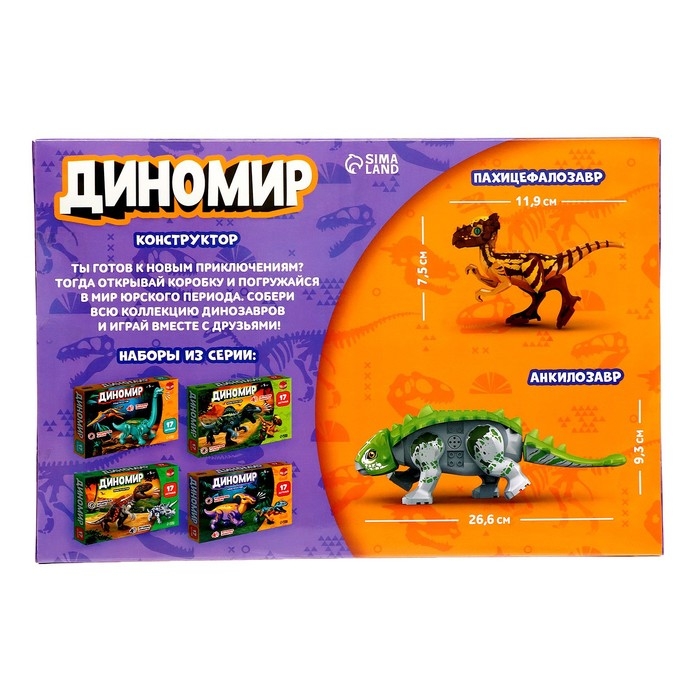 Конструктор «Диномир», пахицефалозавр и анкилозавр, звуковые эффекты, 22 детали
