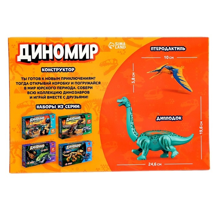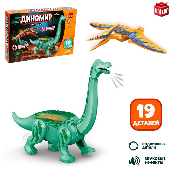 Конструктор «Диномир», 19 деталей, бронтозавр и птеранодон, звук
