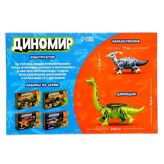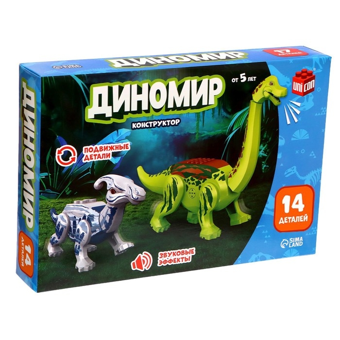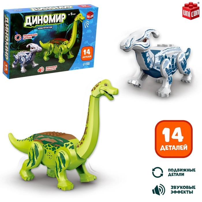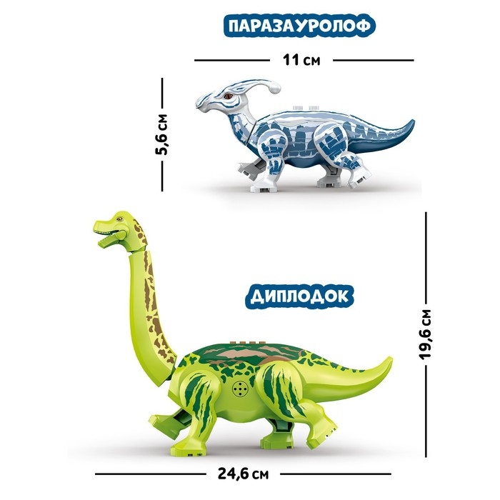 Конструктор «Диномир», 14 деталей, паразауролоф и бронтозавр, звук