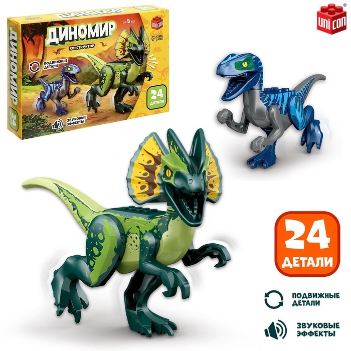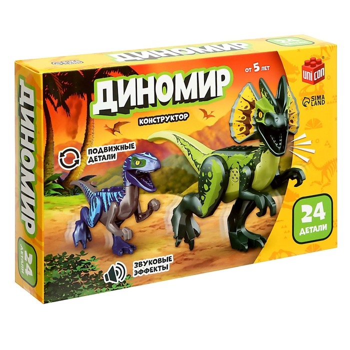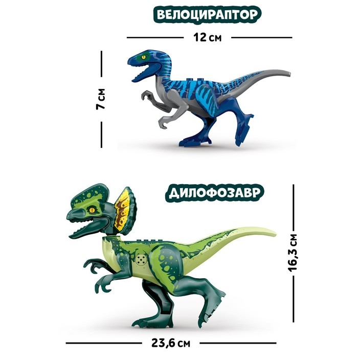 Конструктор «Диномир», 24 детали, велоцираптор и тираннозавр, звук