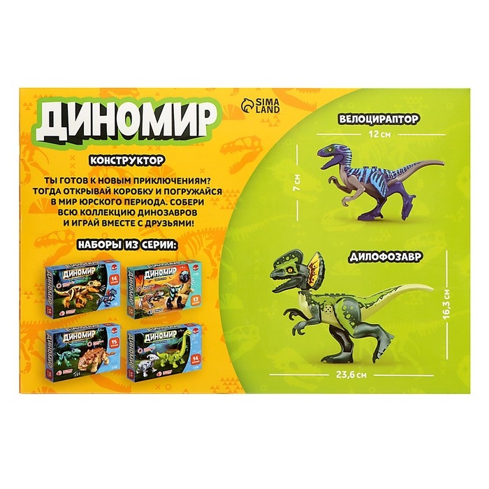Конструктор «Диномир», 17 деталей, велоцираптор, звуковые эффекты