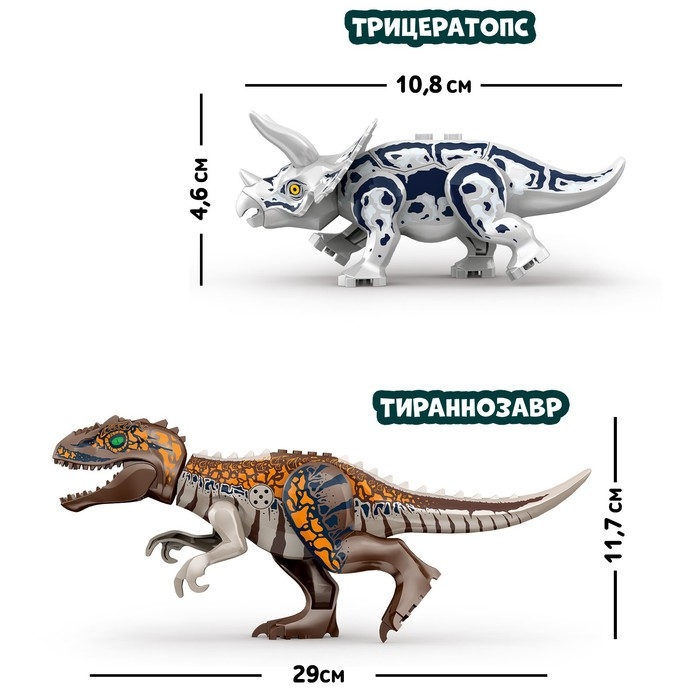 Конструктор «Диномир», 15 деталей, трицератопс и тираннозавр, звук