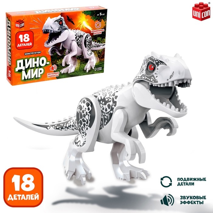 С конструктором «Диномир» ребёнок соберёт подвижную модель динозавра со звуковыми эффектами и окунётся в захватывающий мир доисторических гигантов!