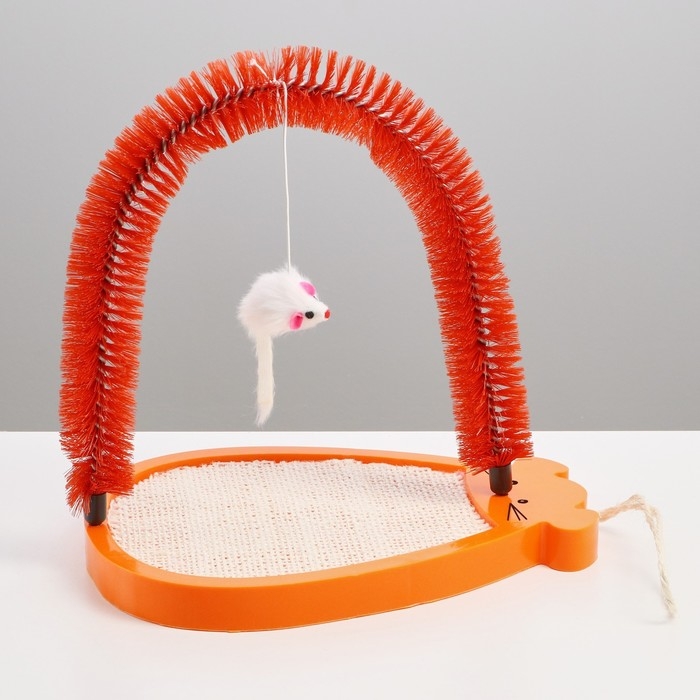 Комплекс для кошек с сизалевой когтеточкой, аркой-чесалкой и мышкой, коричневый