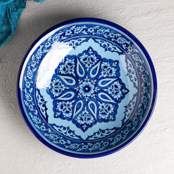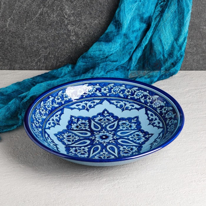 Ляган Риштанская Керамика "Узоры", 33 см, синий