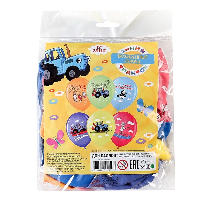 Шар латексный 12'' «Синий трактор», пастель, 1-сторонний, набор 25 шт., МИКС