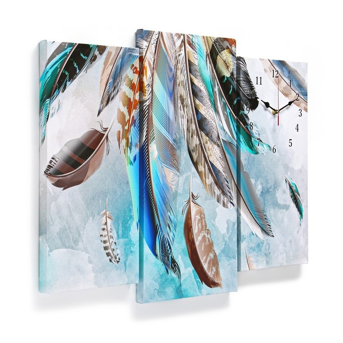 Часы-картина настенные, модульные "Перья", бесшумные, 60 х 80 см, триптих