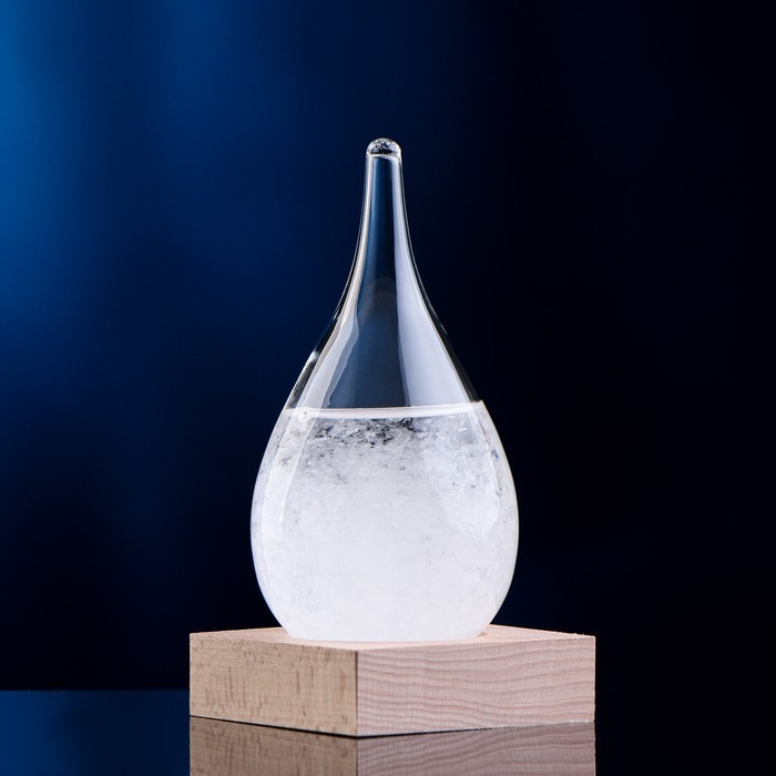 Штормгласс - это химический метеорологический прибор из стеклянной колбы, заполненной спиртовым раствором, в котором в определённых пропорциях растворены камфора, нашатырь и калийная селитра.