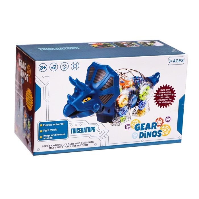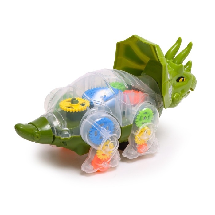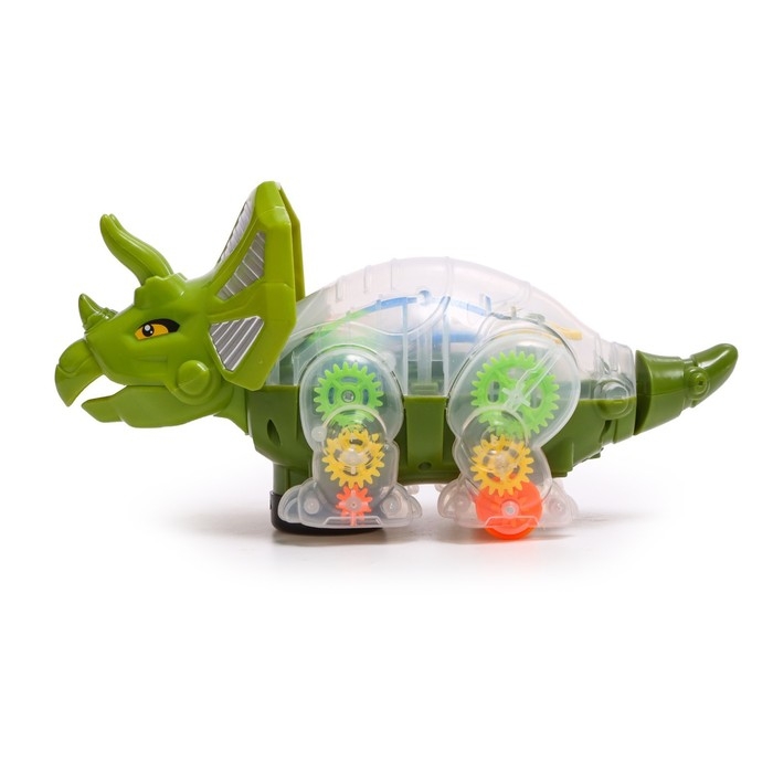 Динозавр «Шестерёнки», свет и звук, работает от батареек, цвет зелёный